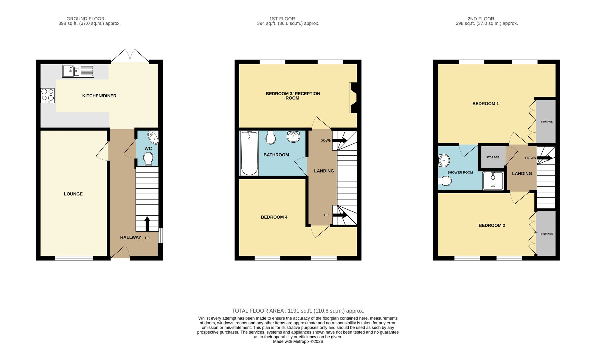 This spacious three storey semi detached house offers versatile accommodation perfect for modern living. Step inside to find a welcoming entrance hall with a convenient ground floor cloakroom and WC. The generous lounge provides a relaxing space for unwinding, while the contemporary fitted kitchen and dining room is ideal for both every-day meals and entertaining guests. Spread across three floors, the property features three well-proportioned double bedrooms, including a master bedroom with its own en suite for added privacy. A family bathroom serves the remaining bedrooms, ensuring practicality for busy households. With ample storage throughout and an integral garage, this home is designed for easy, organised living.