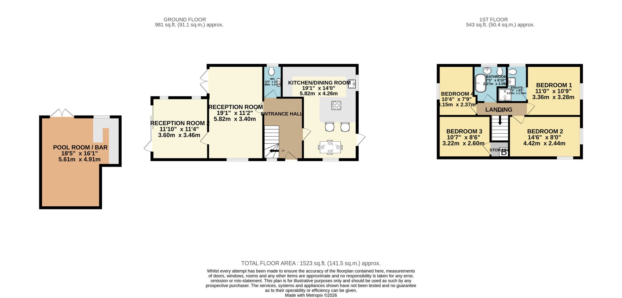 This fantastic extended four bedroom detached home offers an exceptional standard of modern living in an excellent location, perfect for families and professionals alike. Stepping inside, you are welcomed by a spacious entrance hall leading to a beautifully fitted kitchen and dining room, complete with a stylish breakfast bar and a range of integrated appliances, ideal for both every-day family meals and entertaining guests. The generous lounge provides a comfortable retreat, while the second reception room impresses with a skylight, a media wall, and bifold doors that seamlessly connect the indoors to the garden, creating a bright and inviting atmosphere. Upstairs, four good size bedrooms offer ample space for family or guests, with the master bedroom benefiting from a contemporary en-suite shower room. The family bathroom and a convenient ground floor cloakroom/WC add further practicality to this well-designed home. Additional highlights include a pool room and bar room, providing versatile spaces for relaxation and socialising.